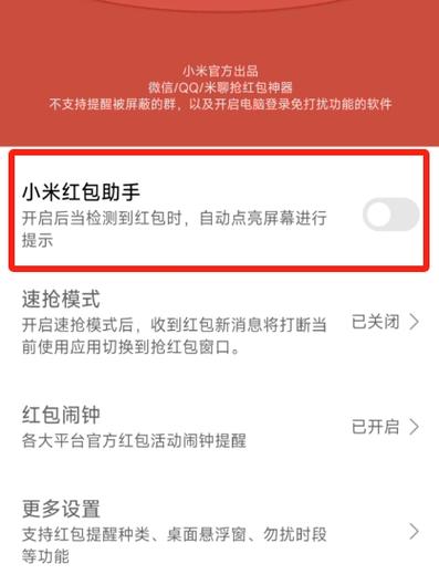 【小米抢红包助手2】火热上线!专为米粉打造的抢红包神器,智能秒抢微信、QQ等平台红包,速度快人一步,操作简单易上手。新增防封号保护,安全无忧;支持自定义抢答延迟,精准高效!节日聚会、群聊狂欢不再错过手气最佳。立即下载体验,让红包轻松入袋!官方正版保障,点击即享畅快抢红包乐趣~