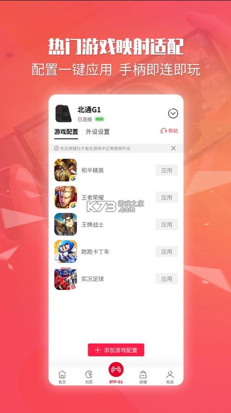 北通游戏厅是北通(Betop)品牌旗下的官方游戏平台,专注为玩家提供一站式游戏服务。它整合了手柄驱动管理、游戏资源下载、按键配置优化等功能,适配北通全系列外设,如阿修罗、蝙蝠等热门手柄型号。用户可通过该平台实现设备固件升级、个性化按键映射及宏编程,提升操作体验。同时内置社区互动模块,分享游戏攻略与外设使用技巧。其简洁界面与稳定性能兼顾PC与移动端,尤其适合追求高性价比与本地化服务的玩家,是连接硬件与游戏生态的便捷枢纽。