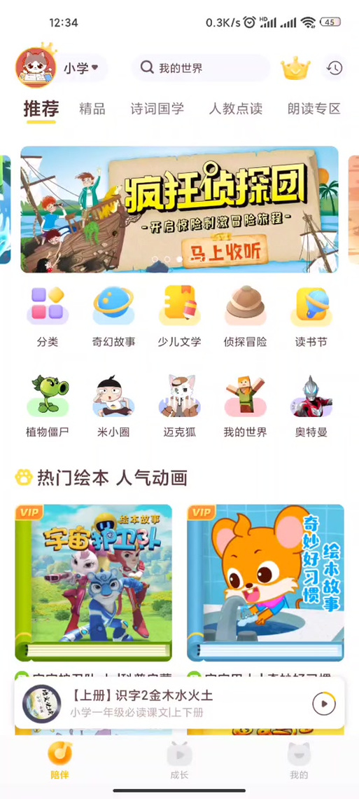 "喜马拉雅儿童版"是专为3-12岁孩子打造的音频内容平台,聚焦儿童成长需求,提供优质适龄内容。平台涵盖童话故事、国学经典、科普知识、英语启蒙等多元品类,由专业主播和权威机构联合制作,内容兼具趣味性与教育性。其特色包括家长管控功能、定时关闭设置、无广告干扰的纯净环境,以及根据年龄推荐的个性化内容库。通过互动式学习模式和精品原创IP(如"奇妙古诗词""小灯塔科普"),激发孩子想象力与学习兴趣,助力语言能力、认知发展与情商培养,是家庭场景中安全可靠的儿童数字陪伴选择。