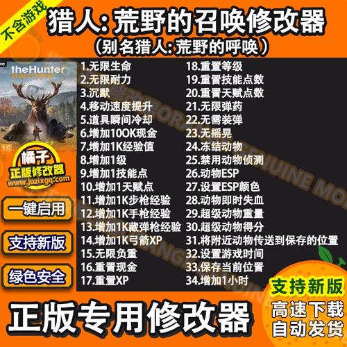 《猎人荒野的召唤修改器》是一款让玩家体验猎人生存与冒险的游戏,玩家可以通过修改器自定义游戏内容,增强游戏体验。通过修改器,玩家可以调整游戏难度、增加道具、改变游戏环境等,让游戏更具挑战性和趣味性。这款修改器为玩家提供了更多可能性,让他们可以根据自己的喜好和游戏风格来调整游戏,创造出属于自己的游戏世界。