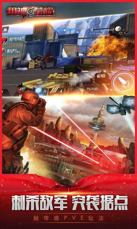 狙神荣耀是一款热门的射击游戏,在游戏中玩家扮演狙击手,利用精准的瞄准和高超的射击技巧,击败敌人并完成各种任务。游戏拥有丰富多样的枪械选择、精美的画面和刺激的战斗体验,是射击游戏爱好者的不错选择。在游戏中,玩家需要不断提升自己的狙击技能,与其他玩家展开激烈的对抗,体验刺激的射击乐趣。