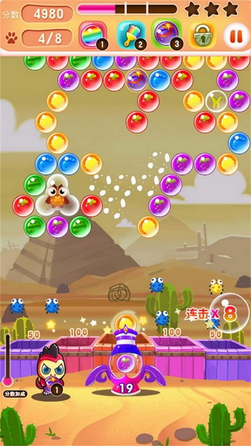 《泡泡龙消消乐》是一款经典休闲益智游戏,玩家通过发射彩色泡泡,将三个或以上同色泡泡连接消除。游戏操作简单但富有挑战性,需巧妙利用角度和物理弹射,规划路径消除整屏泡泡。随着关卡推进,泡泡下落速度加快,障碍物增多,考验玩家反应与策略。画面明亮活泼,音效轻快,适合全年龄段玩家随时随地畅玩,既能锻炼脑力又能放松心情,是打发碎片时间的首选消消乐佳作。