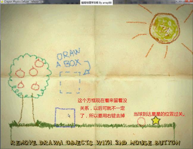 《蜡笔物理学》是一款创意独特的物理解谜游戏,玩家通过手绘蜡笔线条与物体互动,解决关卡中的物理谜题。游戏的核心机制在于“绘制即创造”——玩家画的线条会瞬间转化为实体,影响场景中的小球、木箱等元素,最终引导小球触碰星星过关。其粗糙的蜡笔手绘风格营造出童趣氛围,而基于真实物理引擎的互动则带来意想不到的创意解法,鼓励玩家打破常规思维。关卡设计从简到繁,逐步引入重力、杠杆、滑轮等概念,兼具教育性与娱乐性,让玩家在涂鸦中直观感受物理规律的美妙。