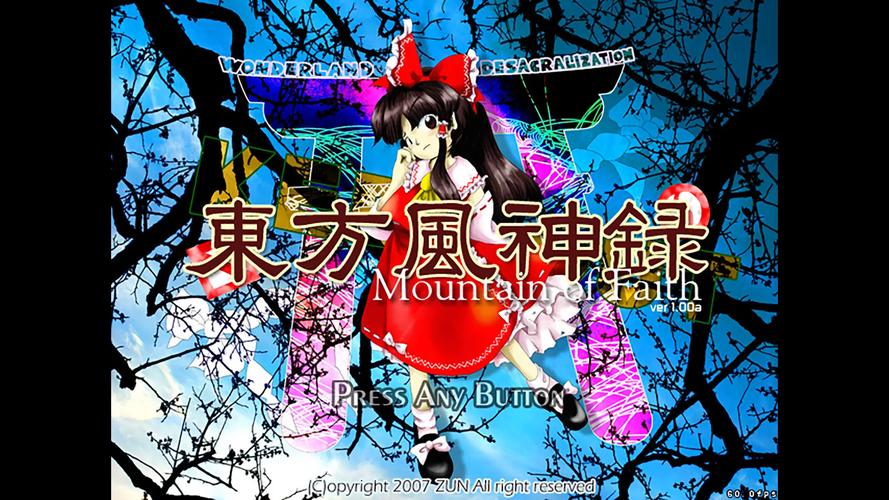 《东方风神录 ~ Mountain of Faith.》是日本同人社团上海爱丽丝幻乐团制作的弹幕射击游戏,为"东方Project"系列第十作。故事围绕幻想乡遭遇异常天气展开,博丽灵梦与雾雨魔理沙为调查异变源头登上守矢神社所在的妖怪之山。游戏引入"信仰系统",玩家通过收集信仰点提升火力,并首次加入可自机的新势力角色——东风谷早苗与八坂神奈子。本作音乐融合和风与现代电子风格,ZUN创作的原创曲目如"信仰是为了虚幻之人"广受好评。作为系列转向Windows平台的第三作,其系统革新与角色设计对后续作品影响深远,进一步丰富了东方世界观的神道教元素。