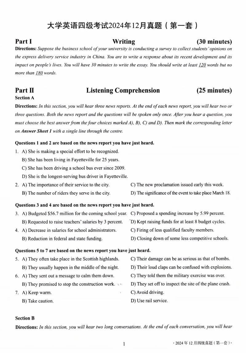 英语四级真题最新版