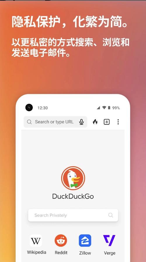 欢迎下载“DuckDuckGo”!这是一个重视用户隐私的搜索引擎,能够帮助你在网络上安全、匿名搜索信息。它不追踪你的搜索历史,也不会收集个人资料,保护你的隐私安全。使用“DuckDuckGo”,你可以轻松找到所需内容,同时享受无广告、干净的浏览体验。无论是日常查找资料,还是探索新信息,它都是一个可靠的工具。快来下载安装“DuckDuckGo”,开启更安全、更私密的网络搜索之旅吧!