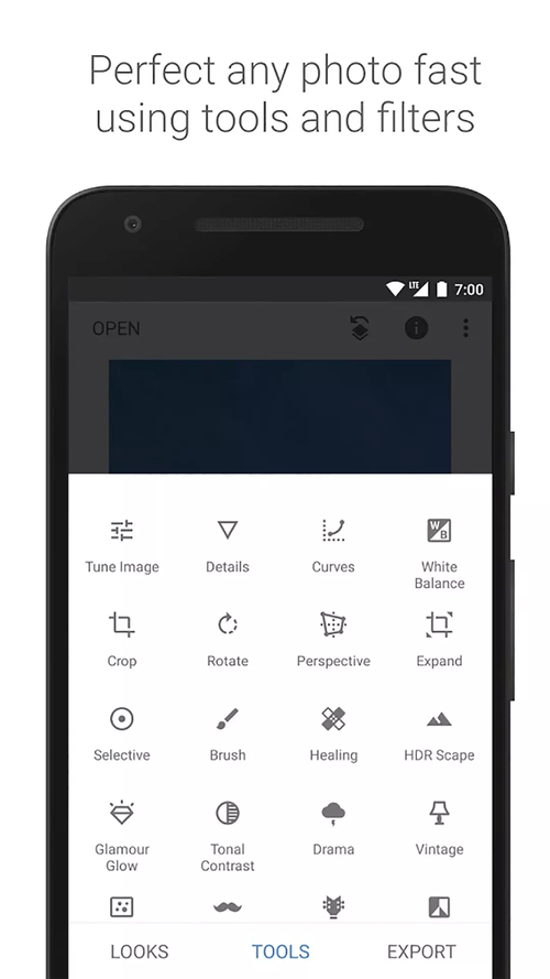Snapseed是一款由谷歌公司开发的功能强大的专业级照片编辑应用程序。用户可以通过Snapseed进行各种照片编辑操作,包括裁剪、调整色彩、对比度和曝光度,添加滤镜和特效,修复瑕疵等。该应用还提供了一系列先进的编辑工具,例如曲线调整、选择性调整和旋转功能,让用户能够轻松实现高质量的照片编辑效果。Snapseed的界面简洁直观,操作简单方便,适合各种水平的用户使用。无论是专业摄影师还是普通用户,都可以通过Snapseed轻松打造出完美的照片作品。
