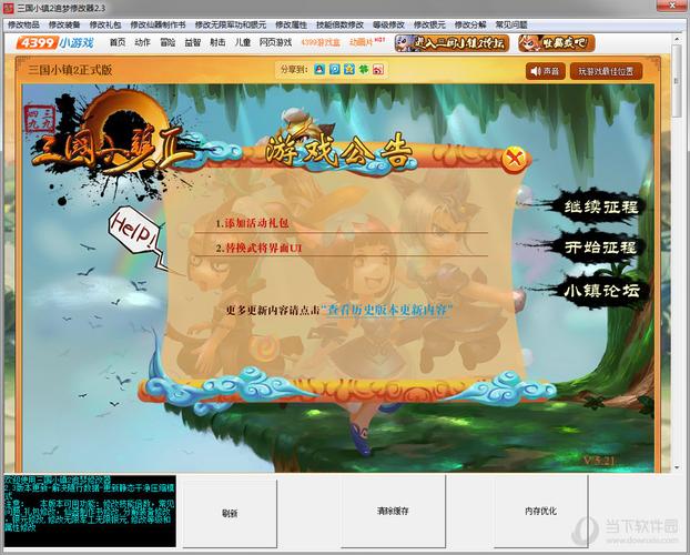 “三国小镇修改器”是一款专为热门游戏《三国小镇》设计的辅助工具,旨在帮助玩家简化游戏流程、解锁隐藏内容或调整游戏参数。通过该修改器,玩家可自由修改金币、元宝、等级等资源数值,快速获取高级装备或角色技能,节省重复操作时间。部分版本还支持解锁特定关卡、调整难度或开启无敌模式,提升游戏体验的灵活性。使用时需注意版本兼容性,避免因数据异常导致游戏崩溃。非官方修改器可能存在风险,建议谨慎使用并备份存档。